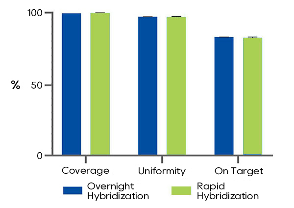 以NA12878为模板进行超声建库(Dynegene,NL1001),使用过夜杂交试剂(Dynegene,NC1003)和快速杂交试剂(Dynegene,NC1006)对QuarXeq Human All Exon Probes 3.0探针进行杂交捕获。测序结果均表现优异。